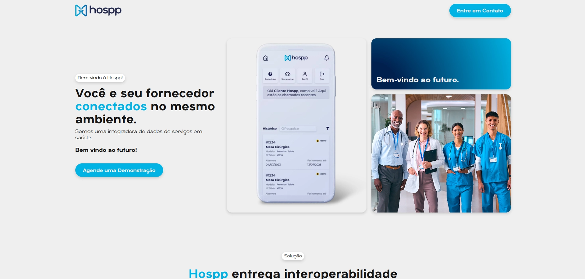 Website criado para a Hospp, destacando inovação e praticidade na gestão hospitalar com design moderno e navegação intuitiva.