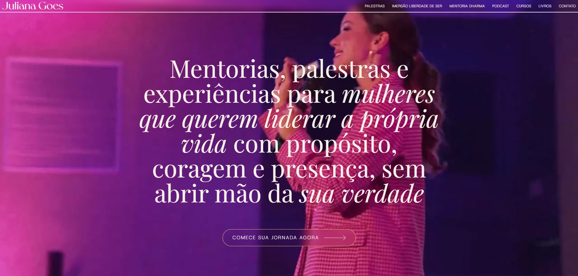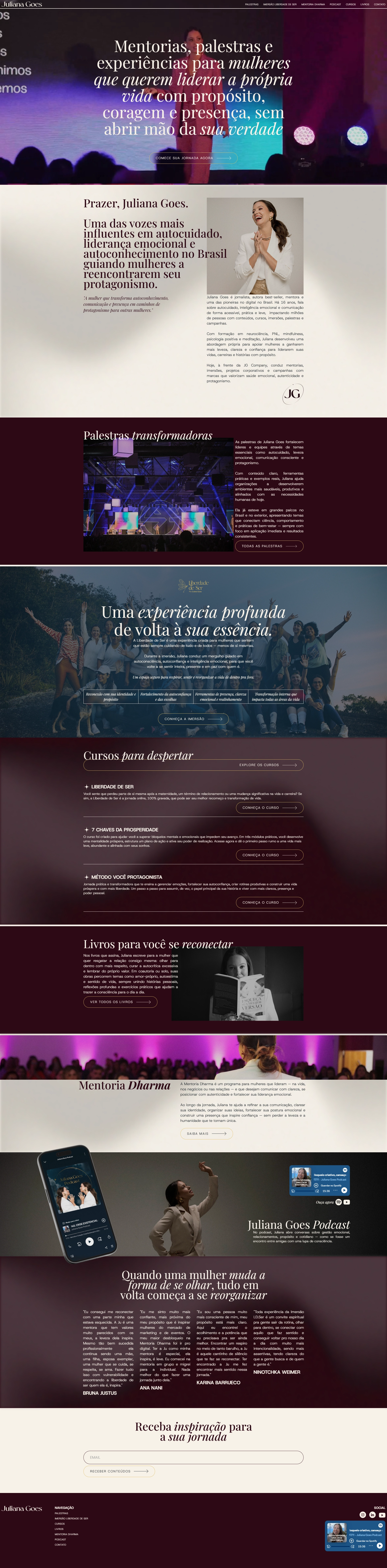 Website para Juliana Goes com design ousado e autoral, unindo tipografia expressiva, cores marcantes e uma navegação fluida que valoriza a experiência.